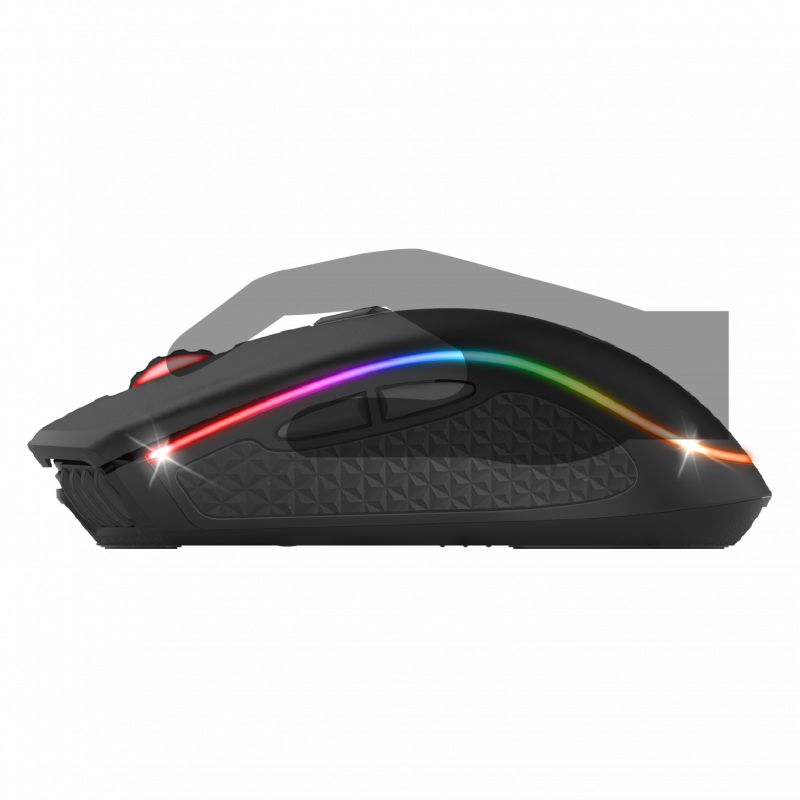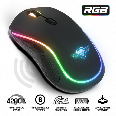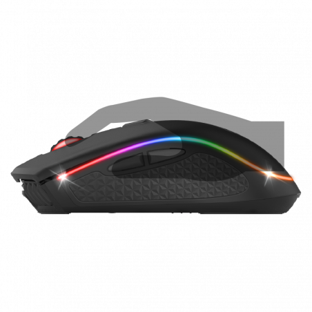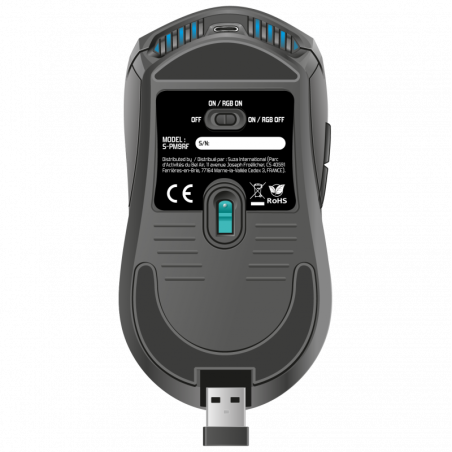 POWER La souris PRO M9 intègre une batterie lithium d’un capacité de 900 mAh. De quoi jouer 50 Heures avec le rétroéclairage allumé. La souris se recharge en 3 heures max. Vous pourrez même continuer de jouer toute en rechargeant la souris.