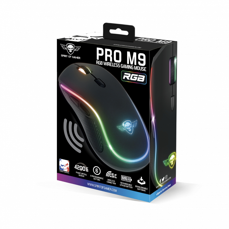 PERFECT SHAPE Des jeux de tir aux MOBA, en passant par les jeux de stratégie et bien plus encore, la souris sans fil PRO M9 vous donne la liberté de jouer sans fil pendant des heures. Avec sa forme symétrique, elle s’adapte à toutes les mains et offre un confort de jeu maximum.