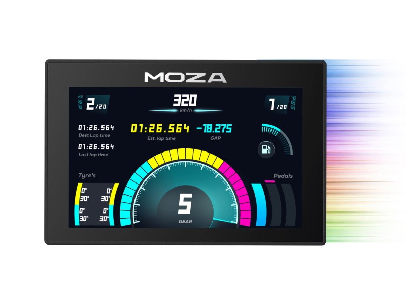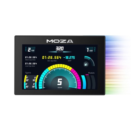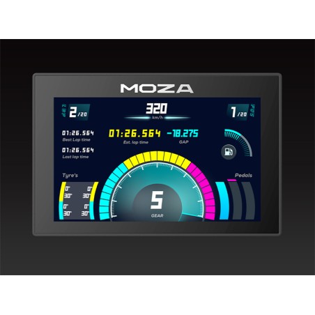 L'ecran CM de Moza Racing propose un affichage de type Dashboard avec une résolution de 800 x 480 à rajouter à votre volant Moza Racing R9 . Sur cet écran 5 pouces 60Hz vous retrouverez toutes les infos utiles en course : vitesse, compte tours, position, meilleur temps, pression des pneus et bien plus encore ! L'écran propose une conception moderne, fine et élégante.