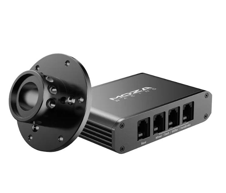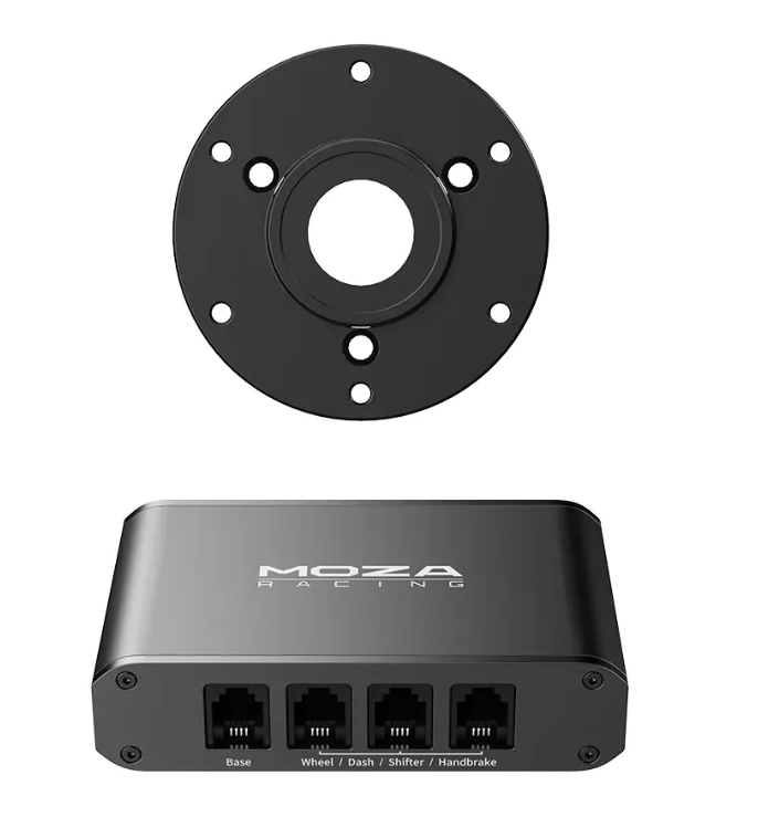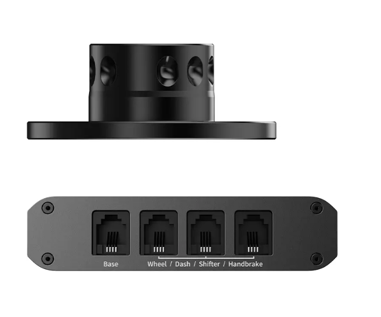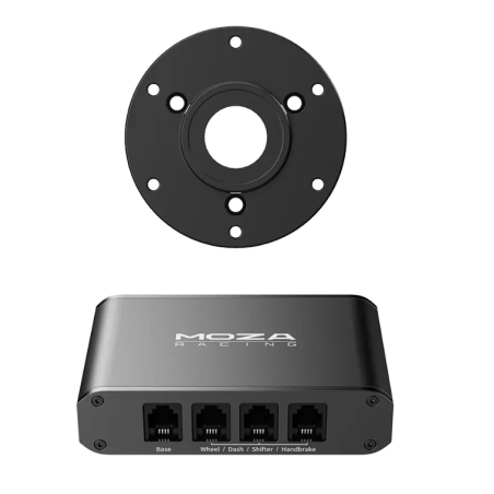 L’adaptateur peut être monté sur deux empattements tiers différents, le moyeu peut connecter le volant KS, le volant FSR Formula et les pédales SR-P Lite directement au PC.