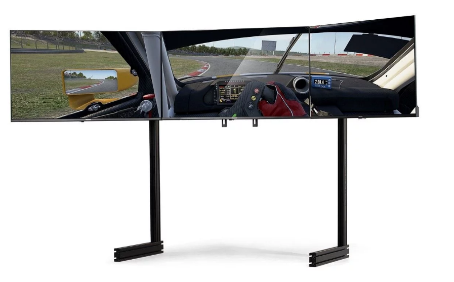 Il offre aux simulateurs de course une solution complète pour le montage de trois moniteurs. Construit à partir d’extrusion d’aluminium 6063 de haute qualité, le support Elite Freestanding Triple Monitor Stand Black Edition supporte trois moniteurs 21″ – 43″ pour une expérience de simulation de course des plus immersives.