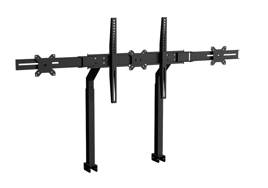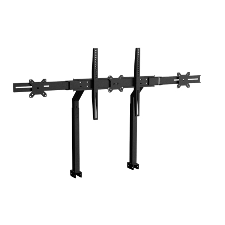 Ce support peut prendre en charge de 1 à 3 écrans. Ce support pour écran est hautement réglable, tant en distance que en hauteur, pour que vos écrans soient dans une position idéale. Il peut accueillir jusqu’à 1 écran 65 pouces ou 3 écrans 27 pouces.